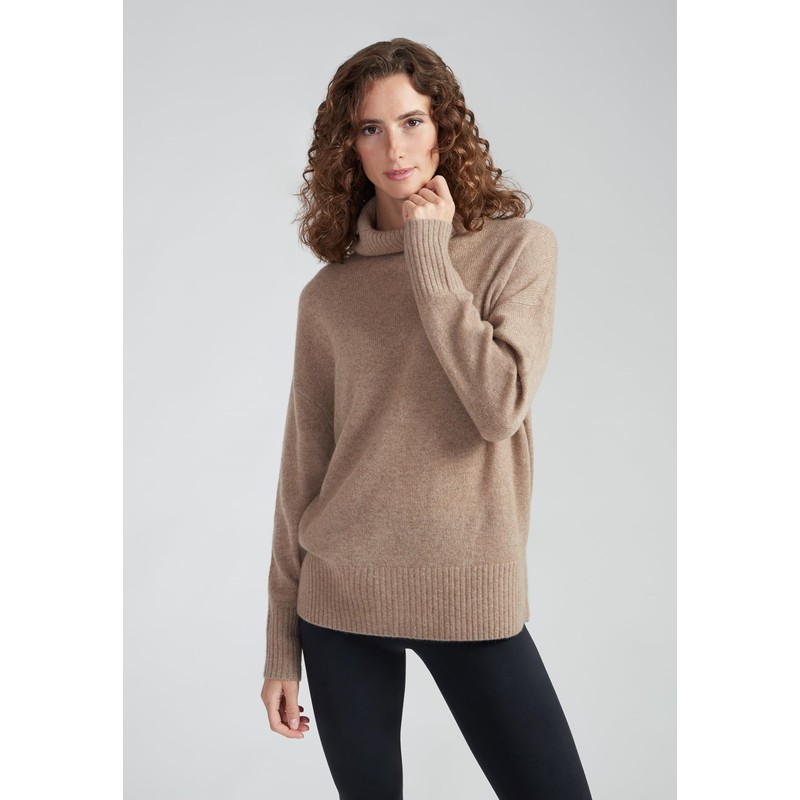 Style & Republic Women's Oversized 100% Cashmere Turtleneck Pullover Generously Cut Stylish Premium Cashmere Knitted Jumper with Turtleneck for Autumn and Winter, nougat