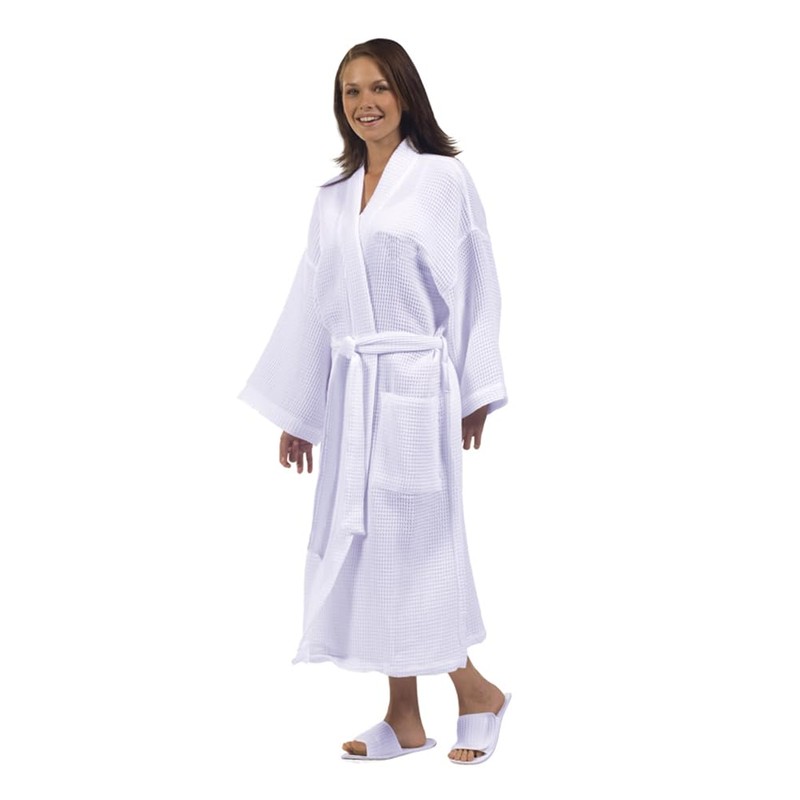Style Waffle Square pattern White Color Adult Bathrobes Kimono Robes, Unisex Waffle Robe, 65% Cotton Waffle Cloth Size XX- Large