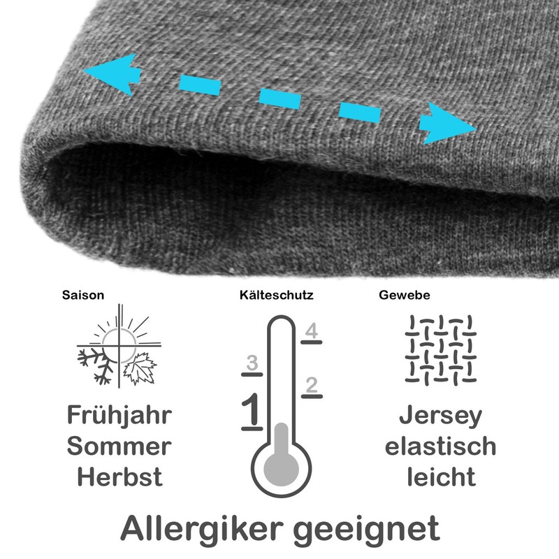 - Thanks to the elastic and fine jersey fabric, the beanie for heads of 52 - 58 cm offers comfortable wearing comfort, also perfect as a hood for sports.