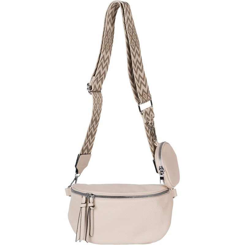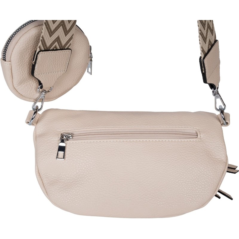 styleBREAKER 02012396 Women’s Half Moon Crossbody Shoulder Bag Set, 2 Pieces, Shoulder Strap with Zigzag Diamond Pattern, beige