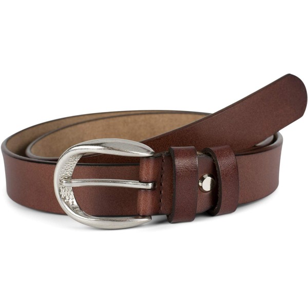 styleBREAKER 03010115 Unisex Slim Genuine Leather Belt Plain Colours with Embossed Buckle, Plain Leather, Can Be Shortened, mocha brown