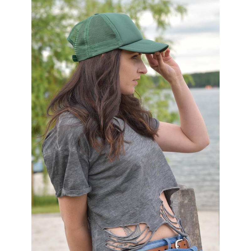 stylebreaker 04023007 5 Panel Mesh Trucker Baseball Cap Adjustable Unisex - dark green
