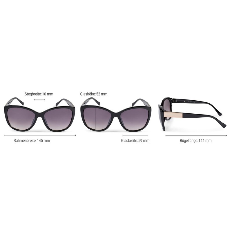 - Damen Sonnenbrille in edler Oversize Form mit Metall Detail am Bügel. Durch die große Glasform wirkt sie Sonnenbrille beim tragen sehr lässig.
