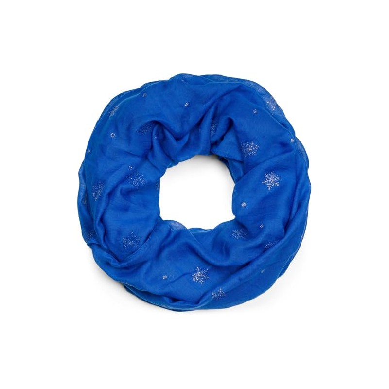 styleBREAKER Ladies Loop Scarf with Glitter Snowflake Print, Soft Tubular Scarf Unicoloured, Shawl 01017064, Colour:Royal Blue