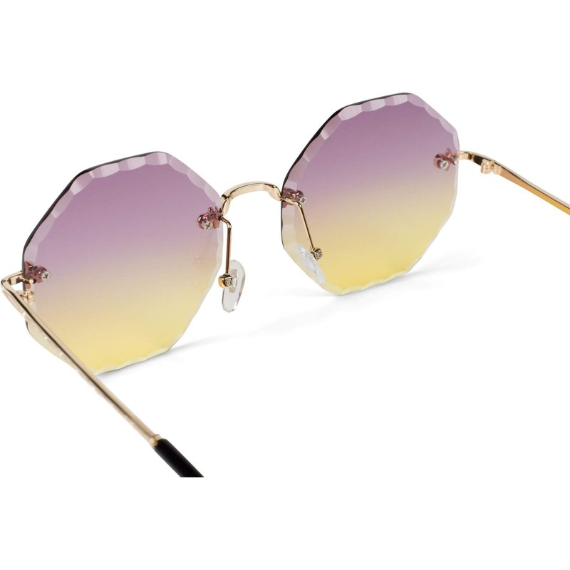 styleBREAKER Ladies Round Sunglasses Frameless with tinted diamond-cut lenses, Embossed temples, Polygonal lenses 09020118, Colour:Frame gold/glass Violet-yellow gradient