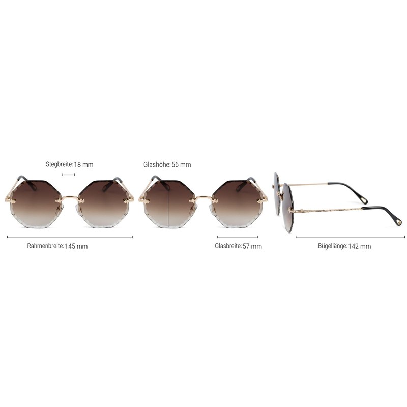 styleBREAKER's noble rimless round sunglasses with embossed Muster on the temples and lenses with diamond cut in the hip hippie look.