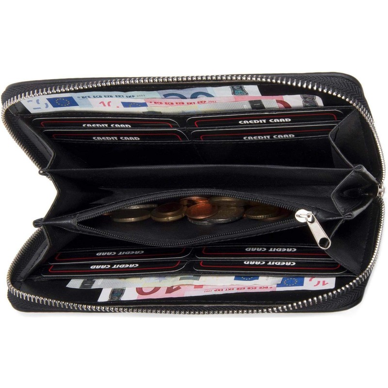 - 2 large insertion compartments, 8 credit card slots, 1 compartment with zip for coins and coins