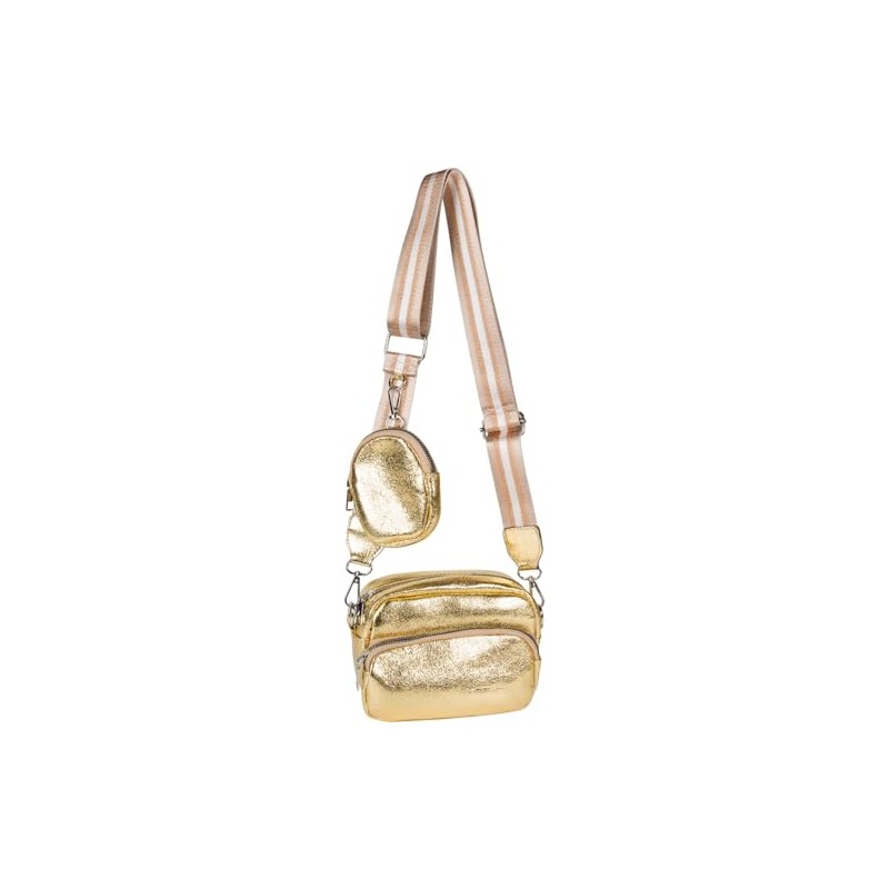 styleBREAKER Women's Shoulder Bag Set 2-Piece, patterned shoulder strap and oval purse, Rectangular Crossbody Bag Solid Color 02012405, Colour:Metallic Gold