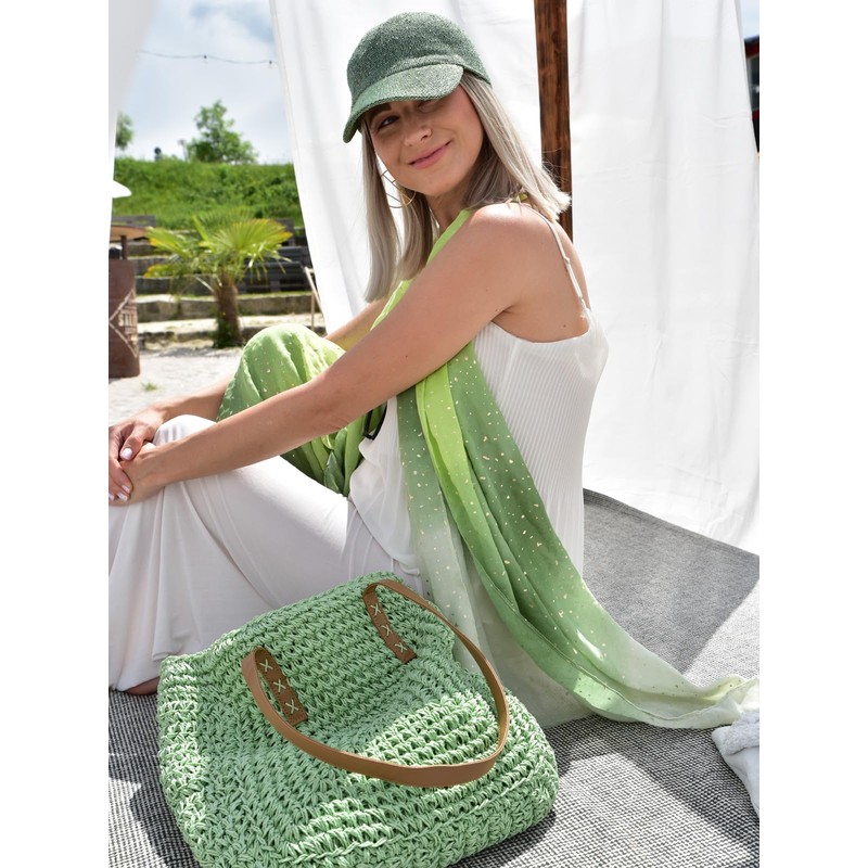 styleBREAKER Women's Summer Baseball Cap Woven with Sequins, Airy Baseball Cap with Metal Buckle, Adjustable, Plain Peaked Cap for Beach and Leisure, Matcha Green, Unit size
