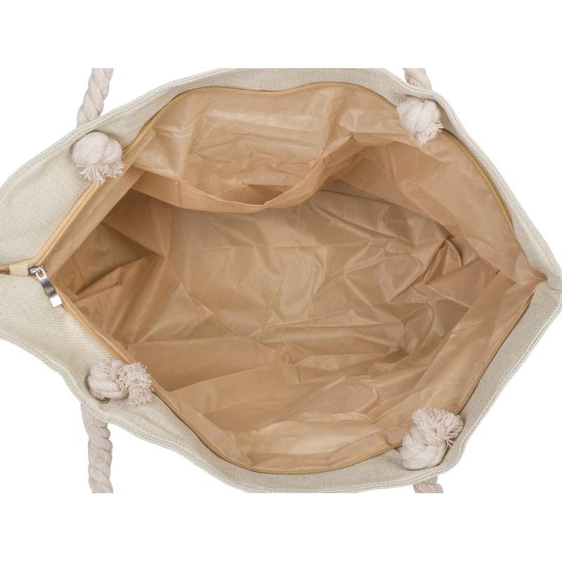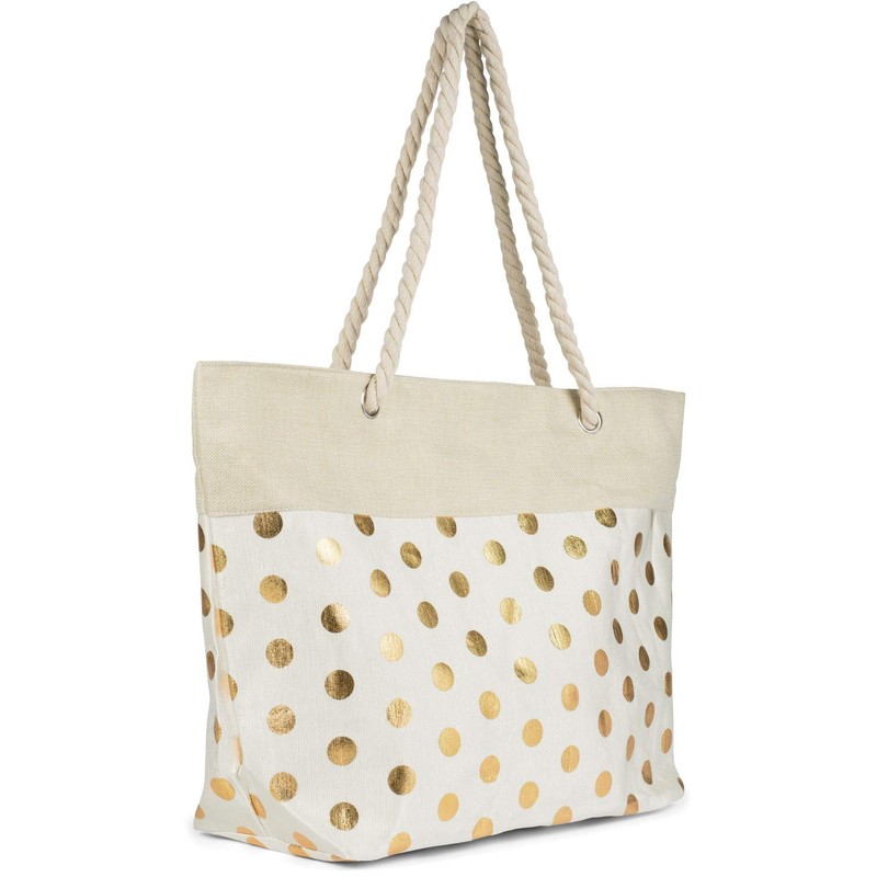 styleBREAKER's large beach bag with polka dot print in shiny metallic look and cord.