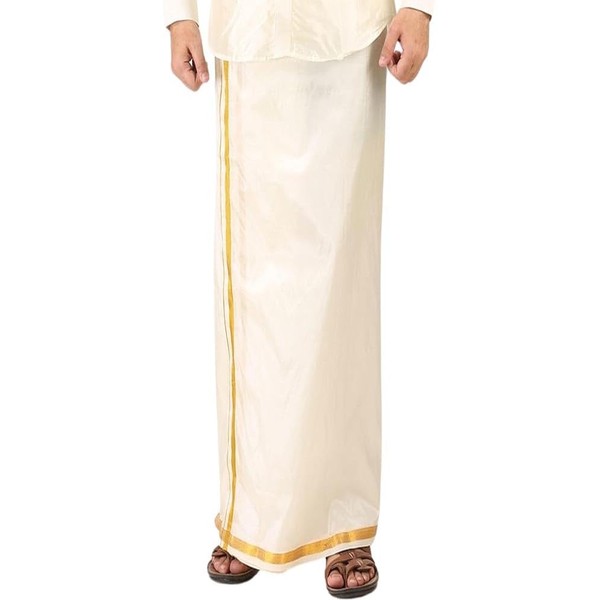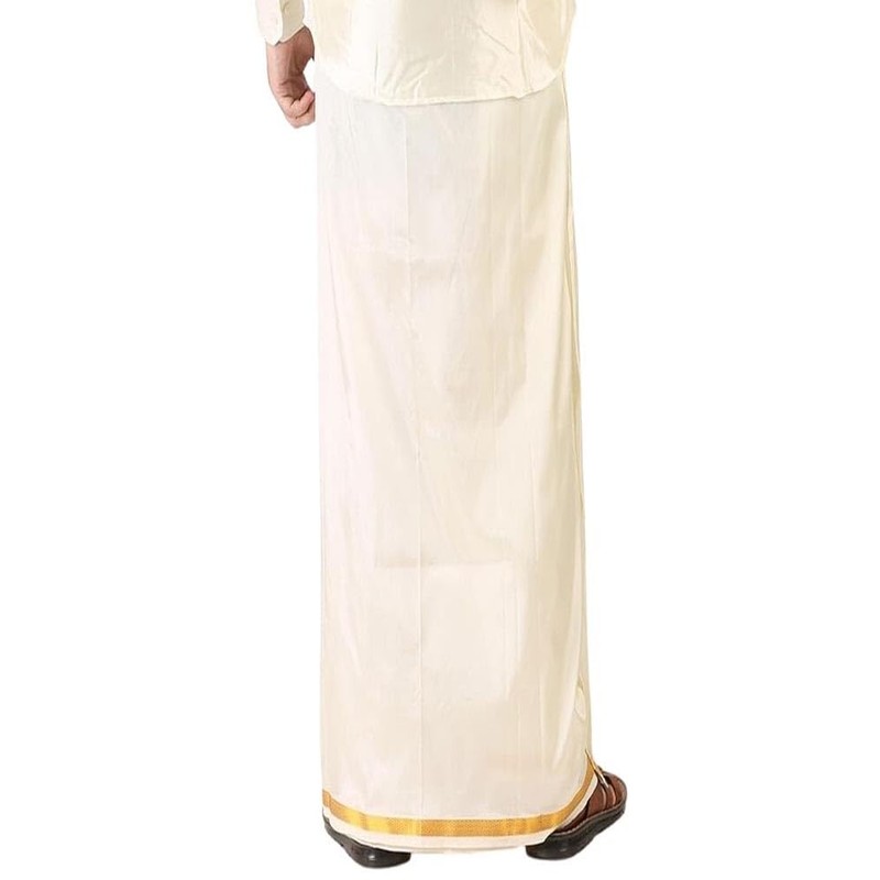 - Features: Traditional Asha silk dhoti from Kerala with golden border to give the wearer a traditional and rich look