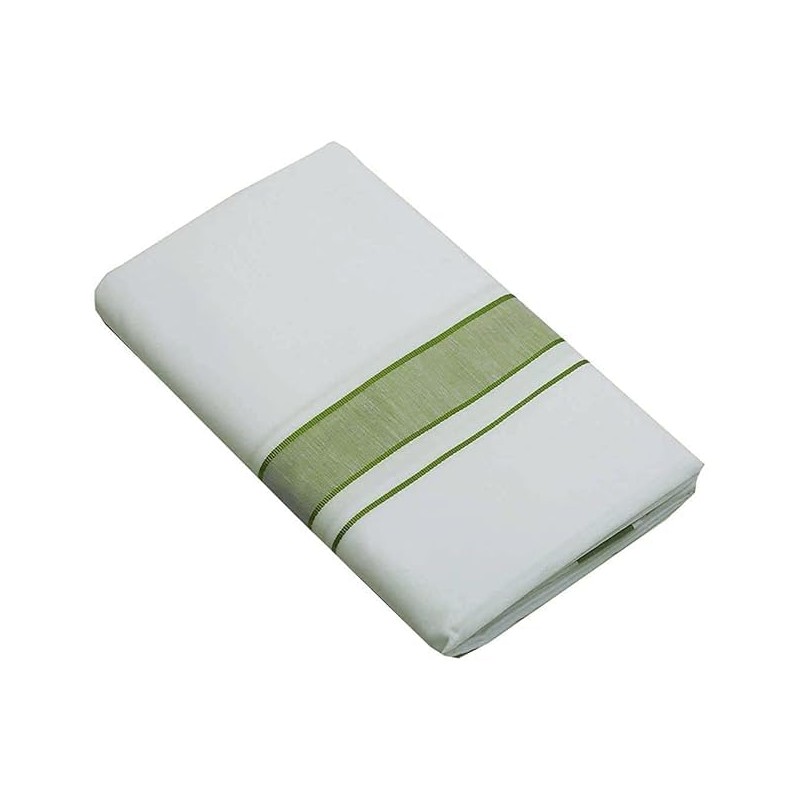 Stylesindia Cotton Dhotis for Men with Gold Zari Border | White Adjustable Dhoti with Pocket | Cotton Vesti Mundu (Olive, Double Layer / 8 Mulam)