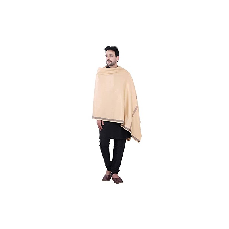 Stylesindia Men's Woven Winter Shawl - Elegant Solid Color Warm Lohi Stoles (35"x70"), Light Biscute, Large