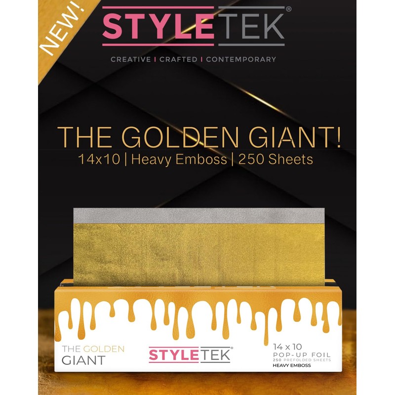 STYLETEK, GOLDEN GIANT POP-UP FOIL, 14"X10", 250 SHEETS PER BOX, HEAVY EMBOSS TEXTURE ALLUMINUM FOIL SHEETS