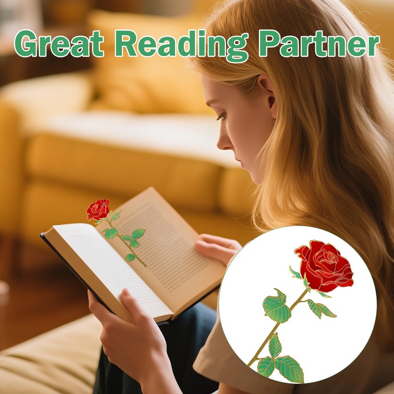 Stylish 2 Pieces Bookmarks for Golden Red Rose - High Quality Rose Bookmarks Durable Metallic Bookmark Pendant, Waterproof Accessory, Gift for Book Lovers