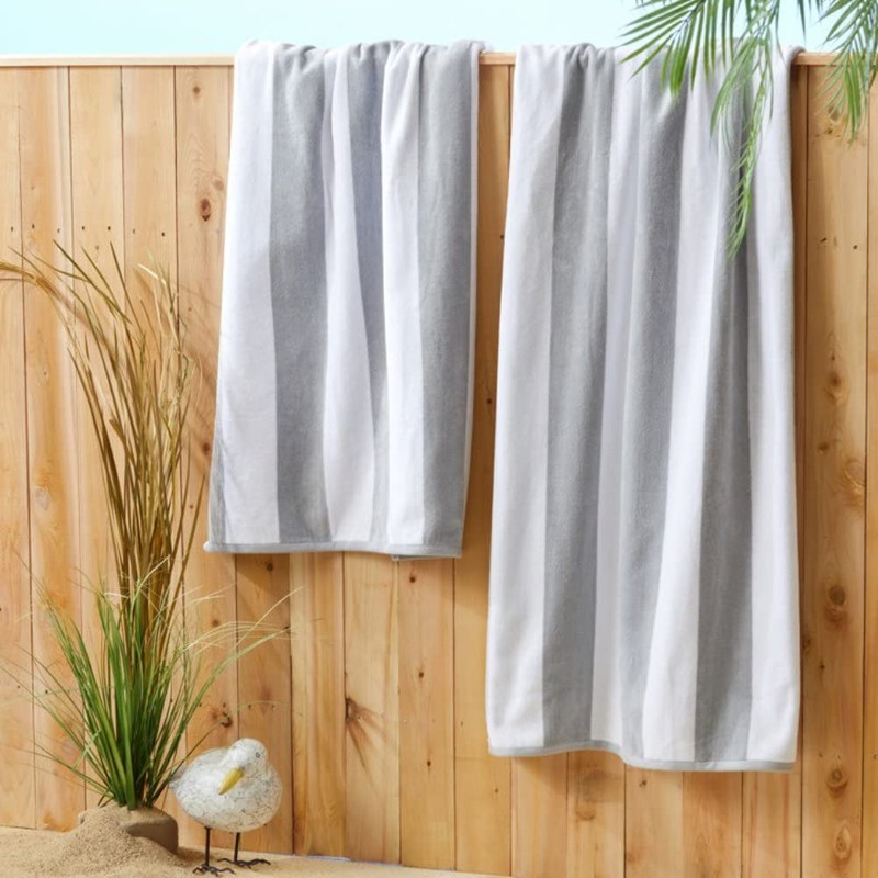 • Stylish 4 Piece Light Gray Beach Towel Set, 100% Cotton, Ultimate Soft, Ultra Absorbent, and Highly Durable, Cabana Stripe Design | All Season Quick Dry, Fluffy Warm Thick & Comfy Pretty silver Shade