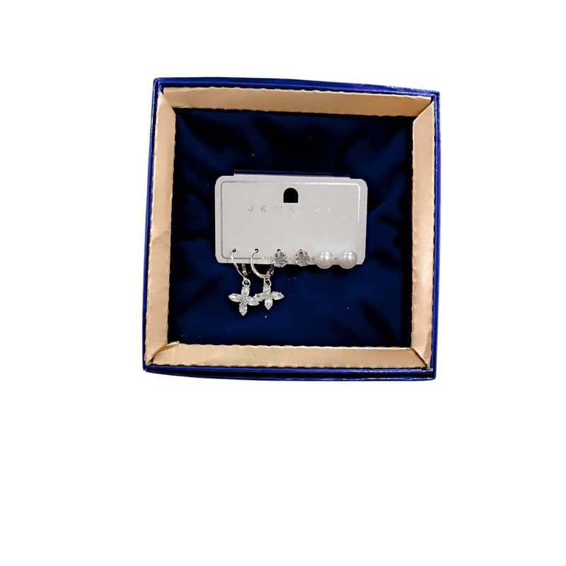 - ✨ 3-in-1 Earring Combo – Includes pearl studs, diamond-like crystal studs & star drop earrings.