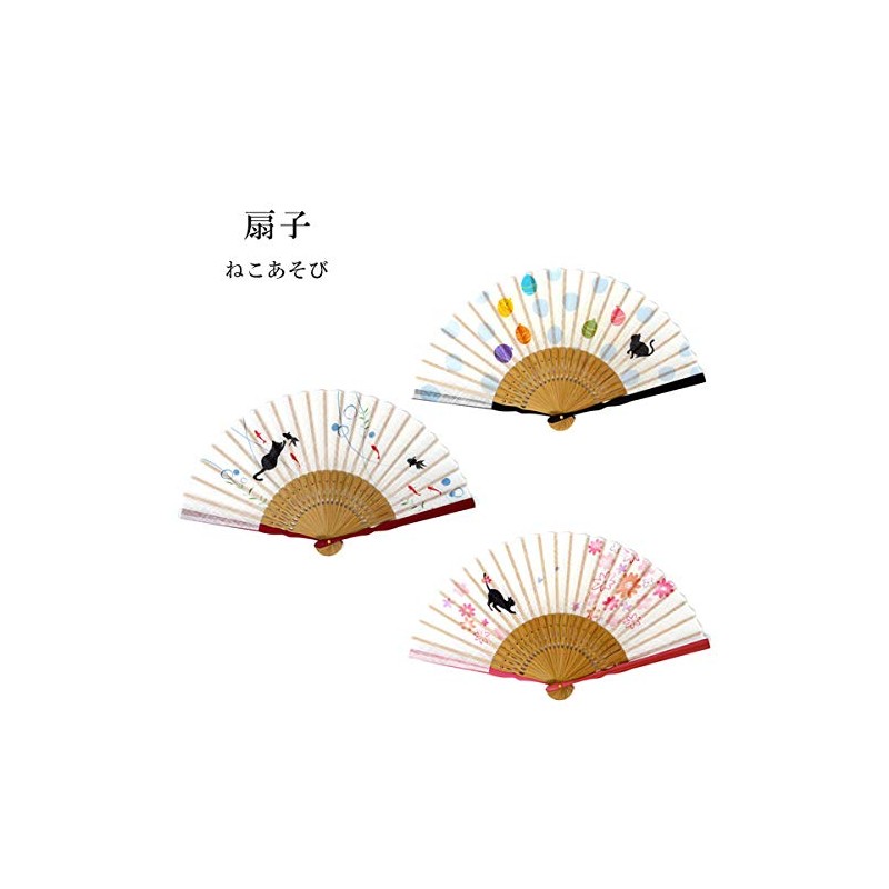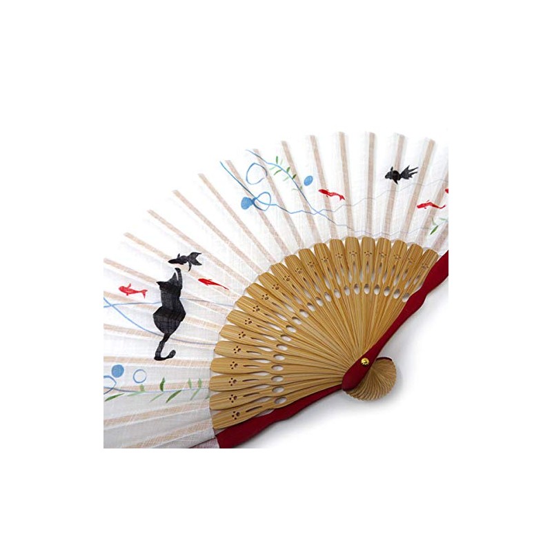 Stylish kimono Iroha Cat Play Fan, Cloth Fan,, 2641: Cat and Goldfish