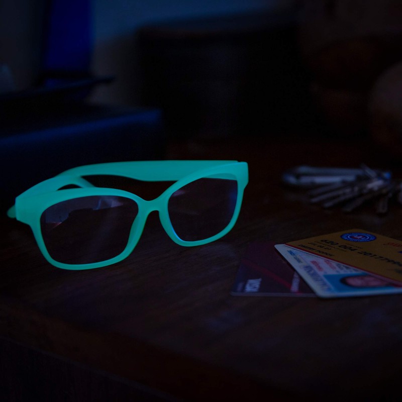 - Glow in The Dark Special: Have you ever experienced searching for your eye glasses late at night? Do you find it maddening to locate your glasses in the dark? Our uniquely designed bluelight glasses have a blue fluorescent covered frame which enables them to radiate in the dark; With its simple yet fashionable design you have a chance to stand out from the crowd; Become distinctive with our brand new UV light glasses