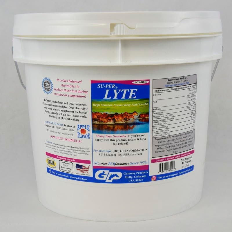 - HYDRATION SUPPORT: SU-PER Lyte is formulated to help maintain normal body fluid levels in horses and provides balanced electrolytes to replace those lost during exercise or competition.