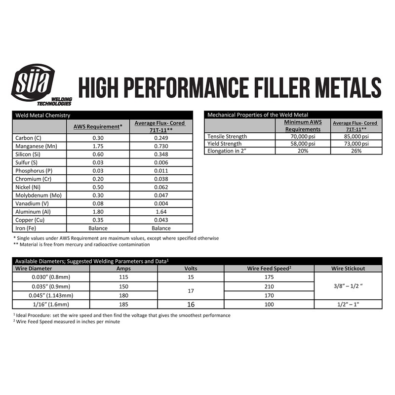 - Very stable arc, low spatter and easy slag removal make the Flux-Cored 71T-11 the convenient choice for any outdoor construction projects where impact properties are not a primary concern