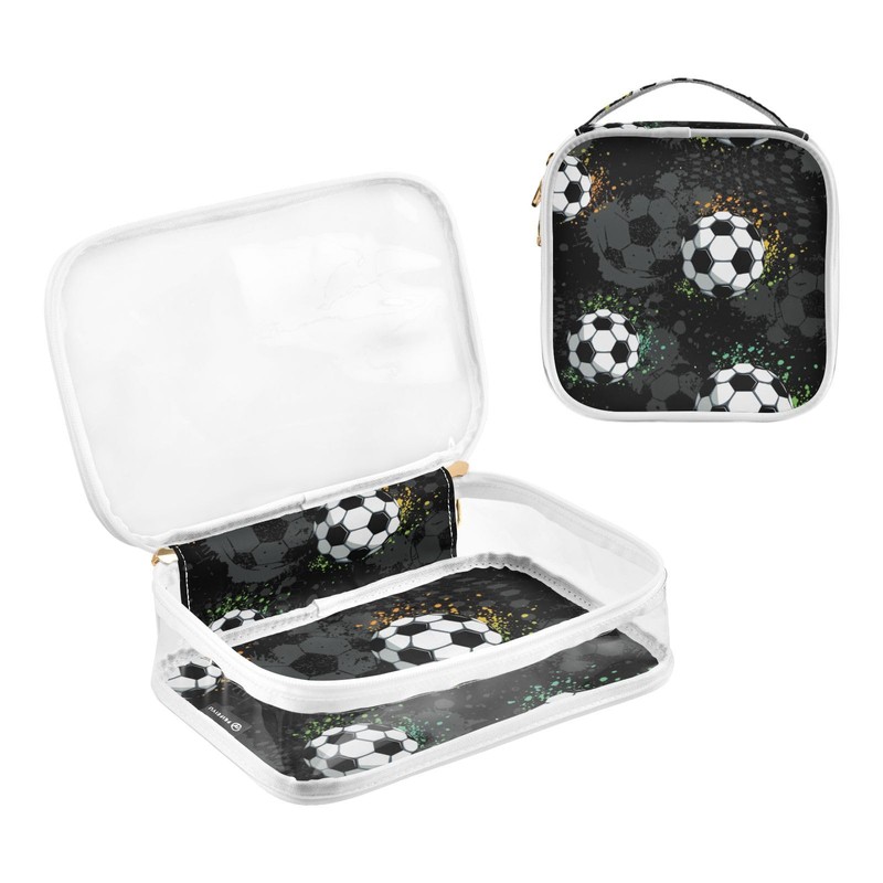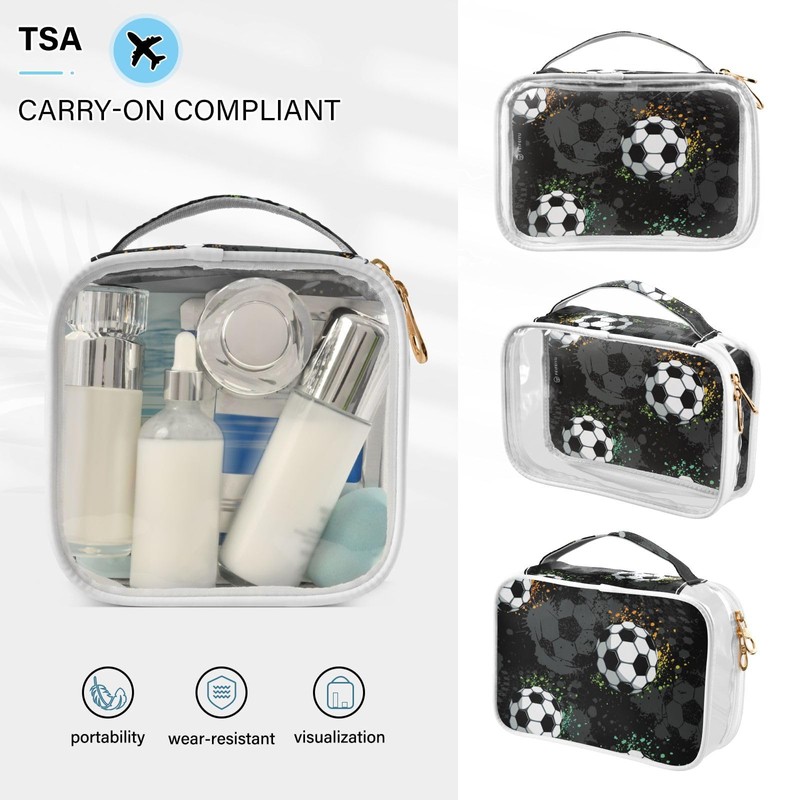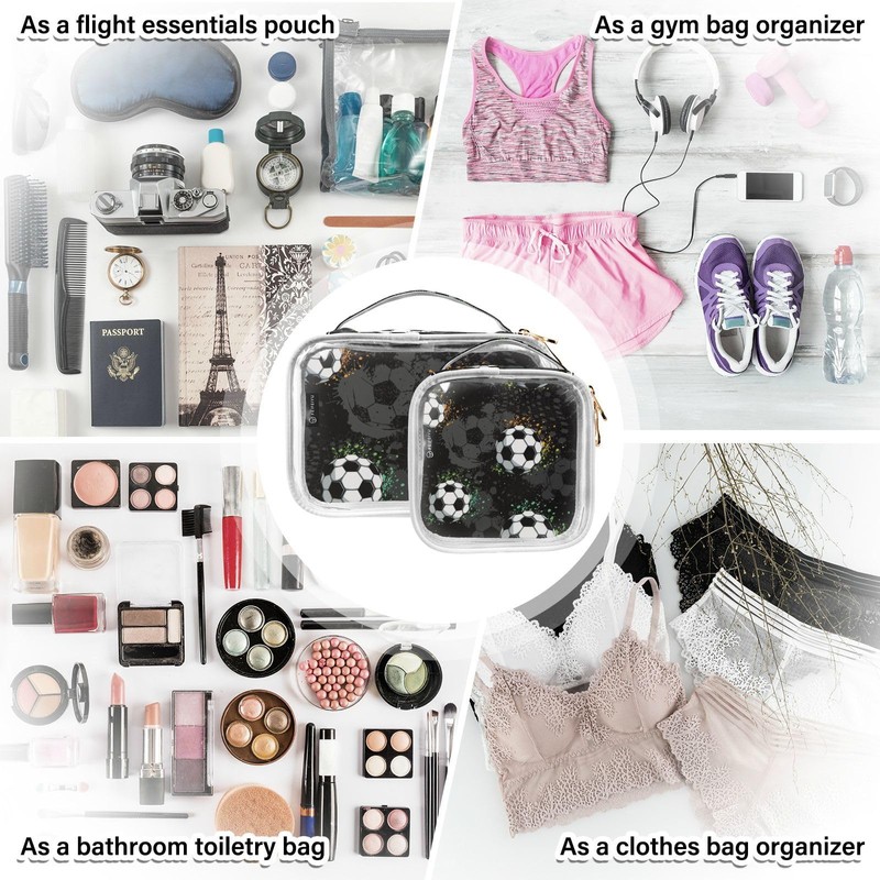 SUABO White and Black Soccer Toiletry Bag, 2 Pack Clear Makeup Bags with Handle Large Opening, Clear Toiletry Bags Fit Carry-on Travel Essential