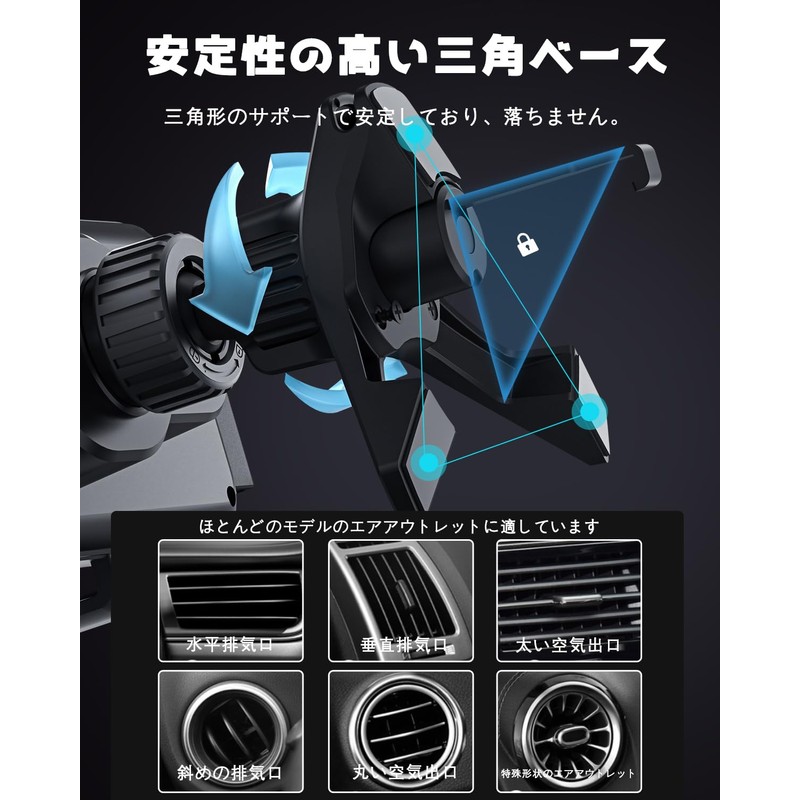 - 【Easy to Install and Use】: This wireless charging car bracket is easy to install and no complicated installation or removal processes. Just dock the bracket and triangle base to the accessories, attach the base hook to the vent to adjust and stabilize it. Triangular base bracket hooks are compatible with 98% vented type and triangular force construction ensures stability