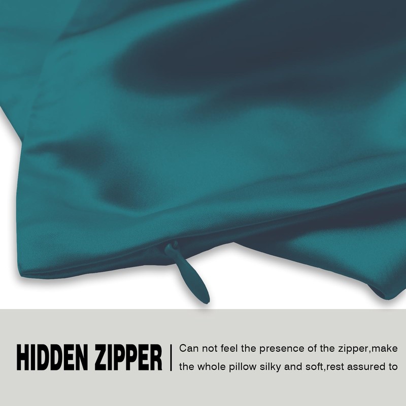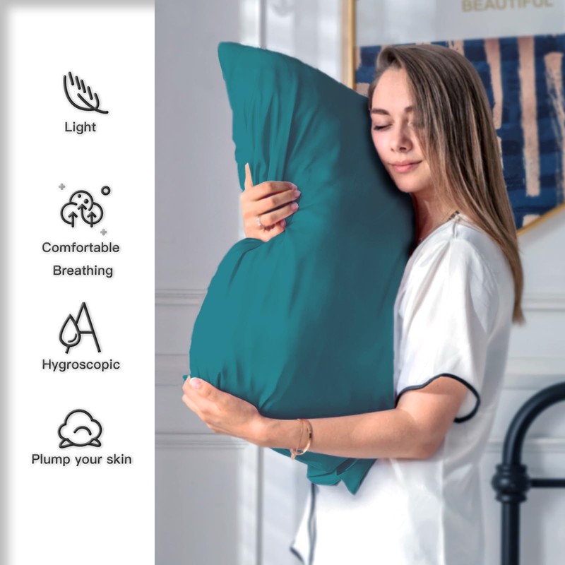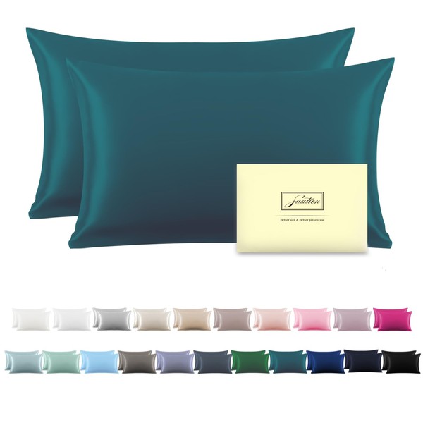 Suatien Silk Pillow Cases 2 Pack Soft Breathable and Sliky Queen Size Pillow Cases Set of 2,Natural Mulberry Satin Silk Pillowcase with Hidden Zipper for Hair and Skin (Teal,20"X 30",2pcs)