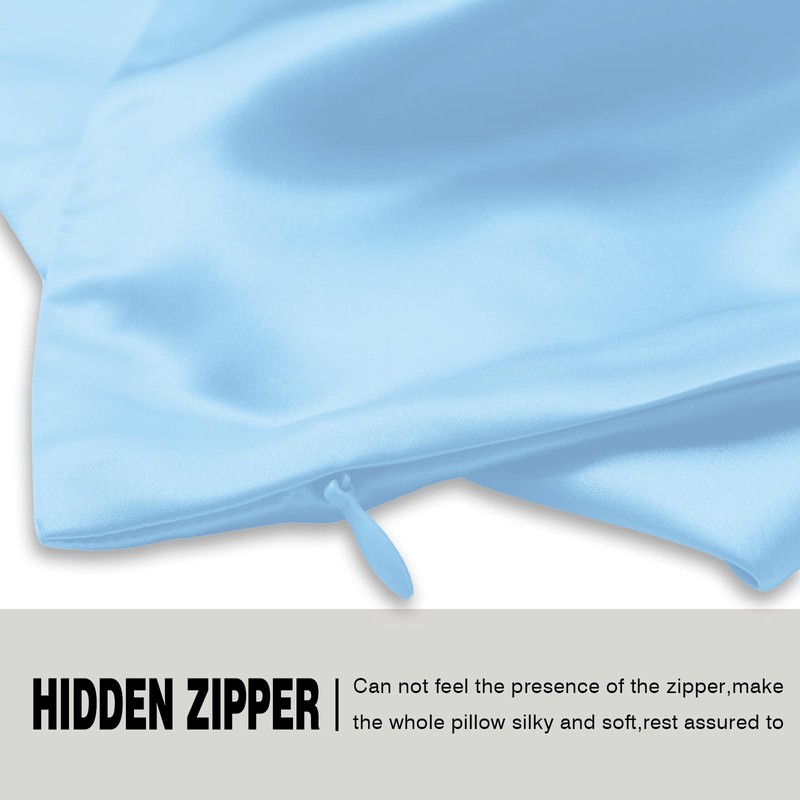 Suatien Silk Pillow Cases 2 Pack Soft Breathable and Sliky Standard Size Pillow Cases Set of 2,Natural Mulberry Satin Silk Pillowcase with Hidden Zipper for Hair and Skin (Sky Blue,20"X 26",2pcs)