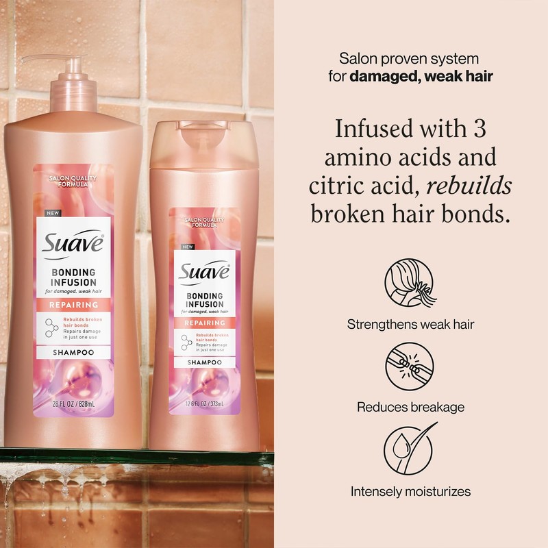 Suave Bonding Infusion Repairing Shampoo 2-Size Bundle, Intense Moisture Restores Shine & Resilience to Weak, Damaged Hair