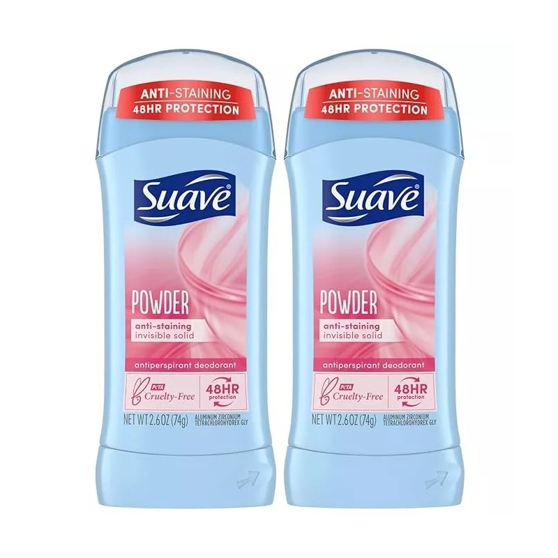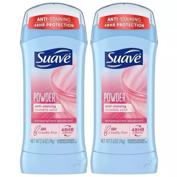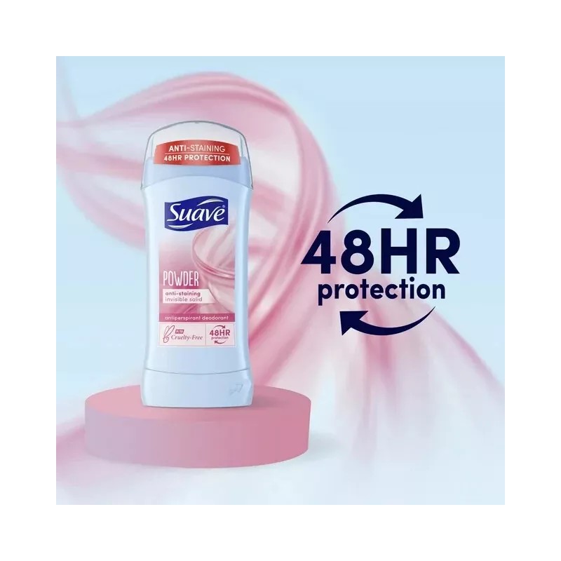- Suave Powder Invisible Solid deo and antiperspirant stick is anti-staining and protects for 48 hours