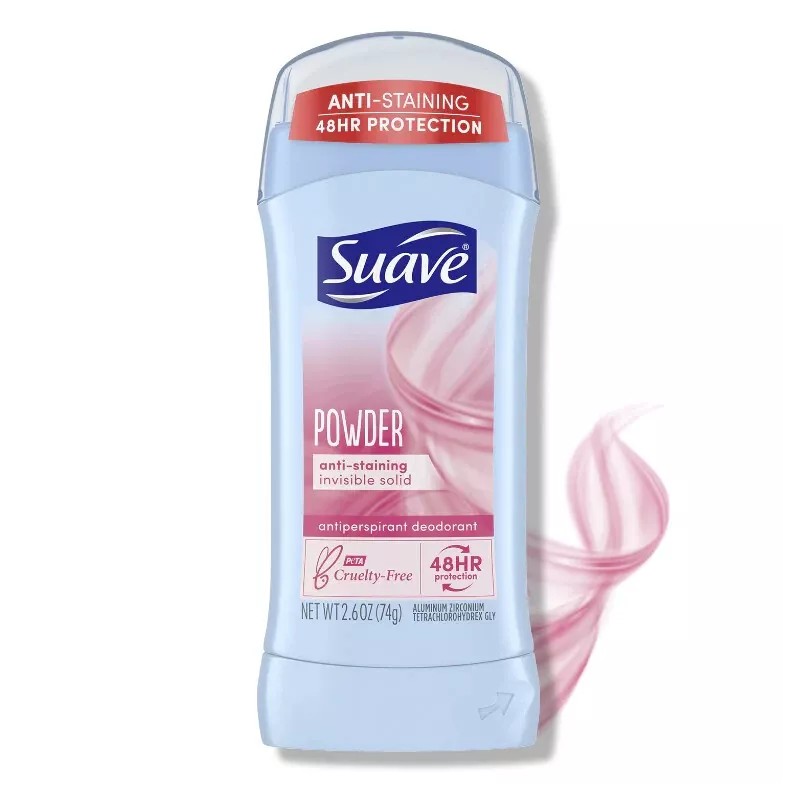 - Suave Powder Invisible Solid antiperspirant protects with a clean, powder fresh scent