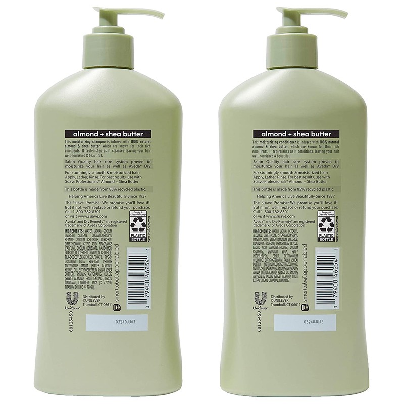 - Suave Professionals Almond + Shea Butter Shampoo and Conditioner are infused with 100% natural almond & shea butter
