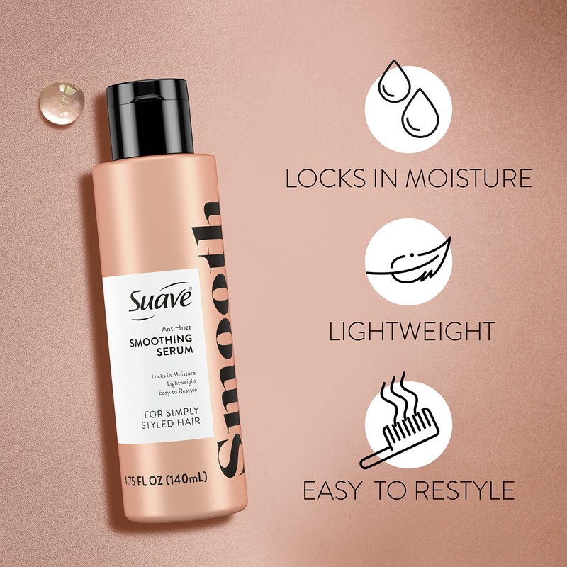 - Our Suave Simply Styled Anti Frizz Smoothing Serum is a lightweight hair oil serum that helps repel frizz and humidity