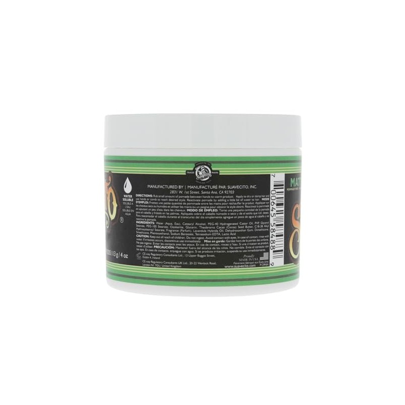 Suavecito Pomade Matte (No Shine) Formula 4 oz, 1 Pack - Medium Hold Hair Pomade For Men - Matte Hair Paste For Natural Texture Hairstyles