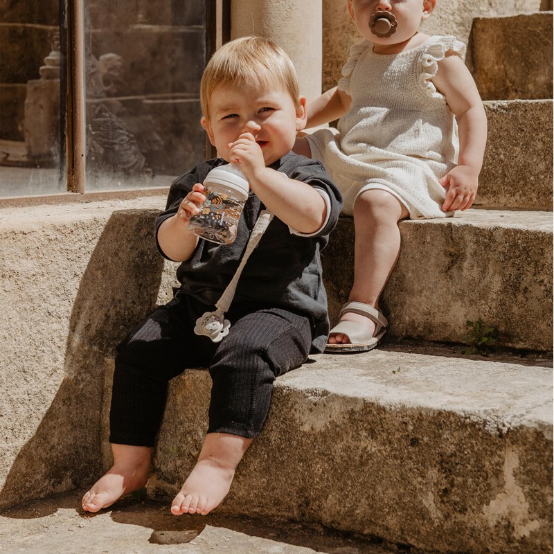 - Attaches the dummy to clothing. The dummy chain has a clip that allows it to be gently attached to the baby clothes to prevent it from falling on the floor, getting dirty or lost