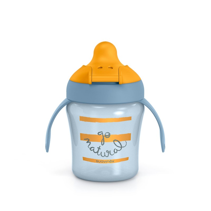 Suavinex, Learning Cup, Learn-Proof Cup with Drinking Spout and Ergonomic Handles, +6 Months, 200 ml, Blue