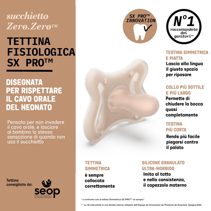 - From #1 Spanish pacifier & bottle brand. The Zerø.Zerø Pacifier with SX Pro Physiological nipple, designed to help tongue remain in same natural position as when baby is breastfeeding, aids in correct positioning of mouth, tongue & jaw.