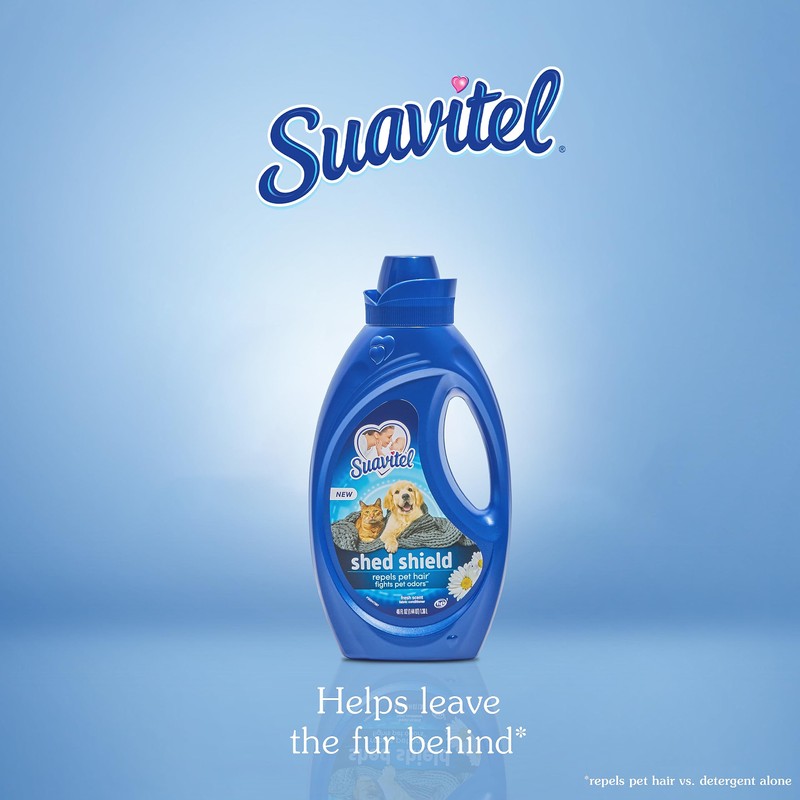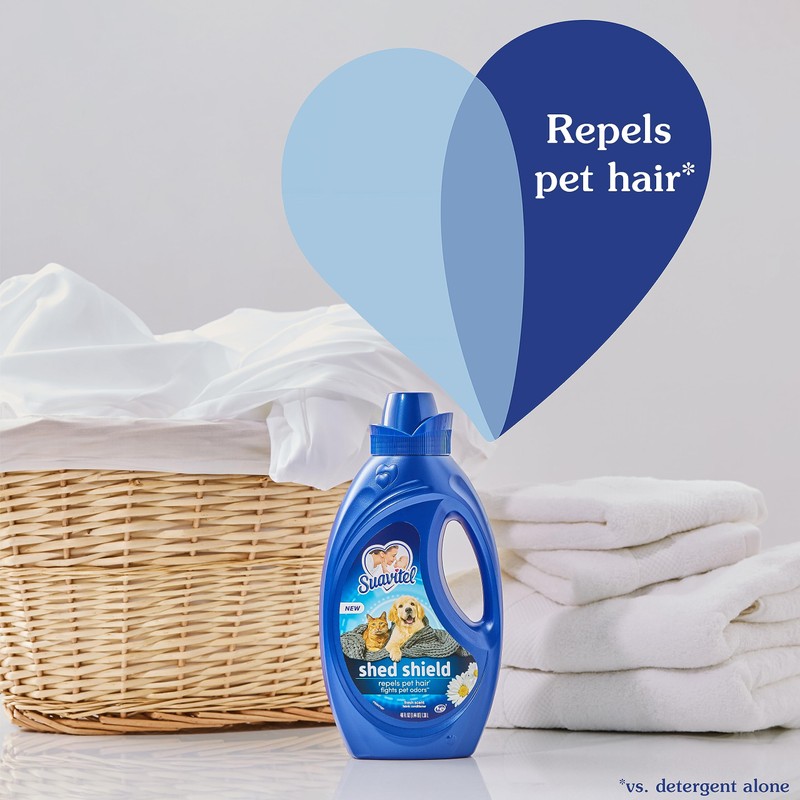 - Stand out from other fabric conditioners with Suavitel Shed Shield to repel pet hair (1) and fight pet odors (2)