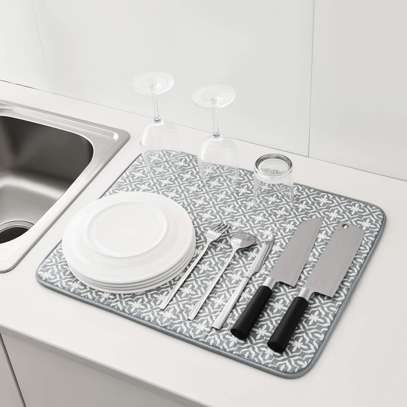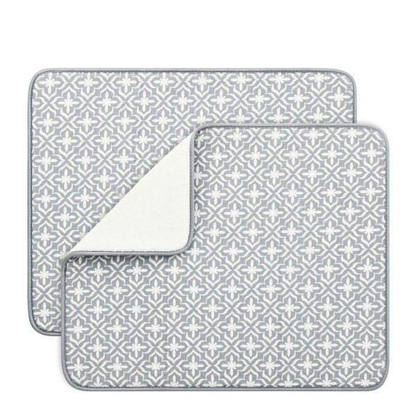 SUBEKYU Dish Drying Mats for Kitchen Counter, Microfiber Absorbent Dish Drainer/Rack Pads for Sink, 19.5*15.8 inch, Set of 2, Grey, leaf