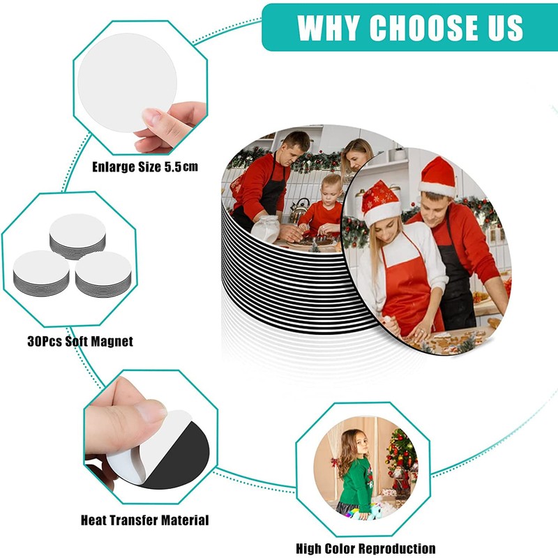 Sublimation Magnet Blanks, 30PCS Sublimation Blank Refrigerator Magnets - Personalized Fridge Magnet Sublimation Blanks Products for Kitchen Office Decorative, 5.5x5.5 cm (Round)