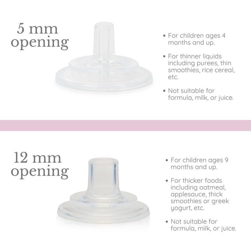 - AUTOMATIC PLATFORM: The Subo food bottle is the perfect feeding solution for young children, starting at just 4 months old. This bottle allows children to easily sip and enjoy their food through a soft silicone spout. The platform inside the bottle automatically moves up as the child consumes the food, ensuring they get every last bit without any struggle. This makes mealtime a fun and stress-free. It comes with an original 12mm (1/2 inch) spout and a 5mm (1/4 inch) straw spout.