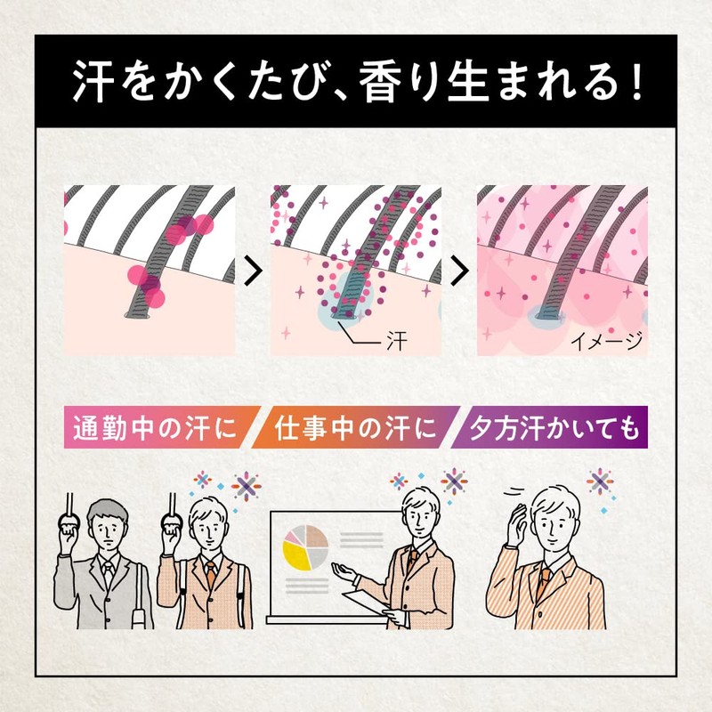 - Reset the scent and scalp odor every time you sweat. *) This is a unique technology that is quick drying aroma technology. No sticky smell or sticky during the day. Clean and scented until the evening. Masking effect with functional fragrance