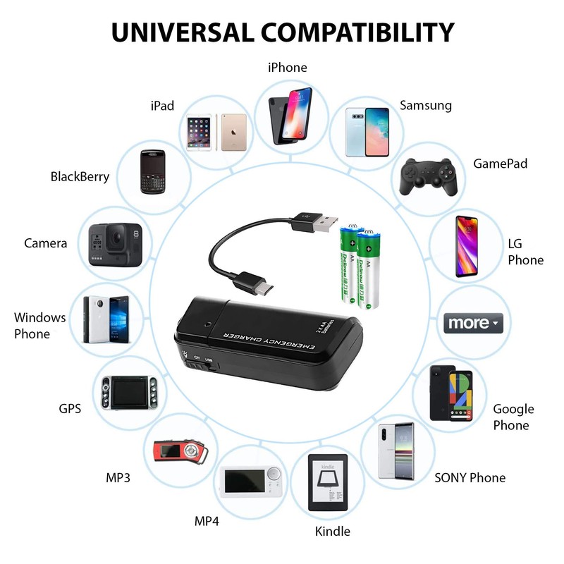 ✅Using 2AA Batteries gives up to a 3 Volt charge capacity, enough to usually recharge by 15-25% of Works for your battery life. That's why this is an Emergency Power Bank, you can use as many AA Batteries as need be until full charged.