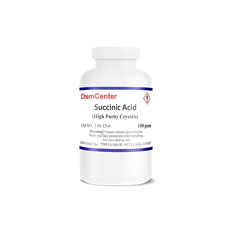 (THESE ARE NOT PILLS!) . FAST SHIP! You are purchasing 100 grams of High Purity Succinic acid loose CRYSTALS/POWDER. For lab and science use only. Minimum purity is 99.5%. Typically 99.9% .....Not intended for food or drug use. Shipping will comply with all USPS regulations. Item is NOT regulated by the DOT. Picture may not reflect new GHS labeling. This material is NOT for EXPORT out of the US.
