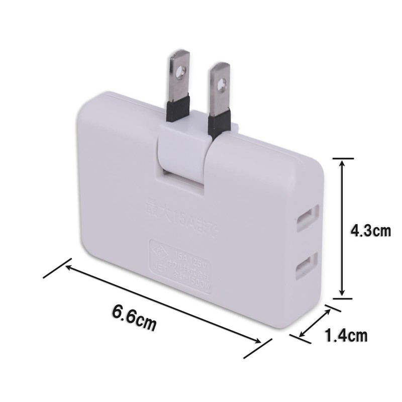 - Size (W x H x D): 2.6 x 1.7 x 0.6 inches (6.6 x 4.3 x 1.4 cm); Weight: 1.4 oz (40 g); Specifications: Rated 15A, 125V