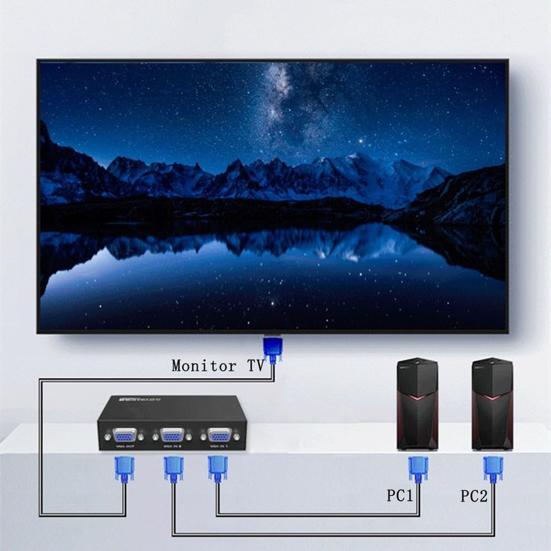 - Compatibility: VGA video switchers typically have broad compatibility and can be used with most standard VGA devices and monitors. This makes them ideal for home entertainment systems, conference rooms, educational environments and other situations where you need to switch between different signal sources. Color: Black product size: 11x6.5x2.5cm