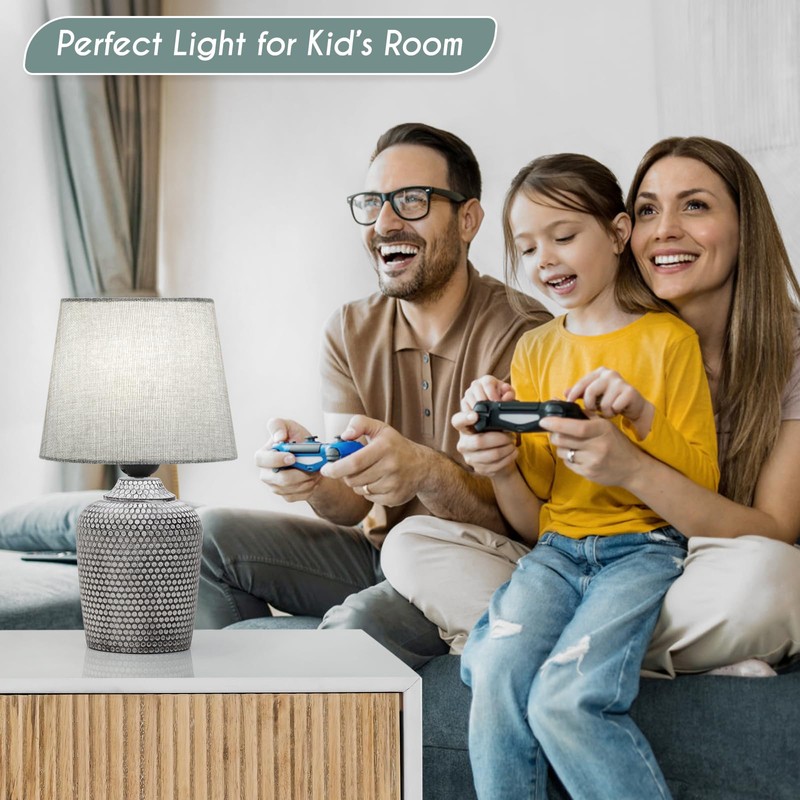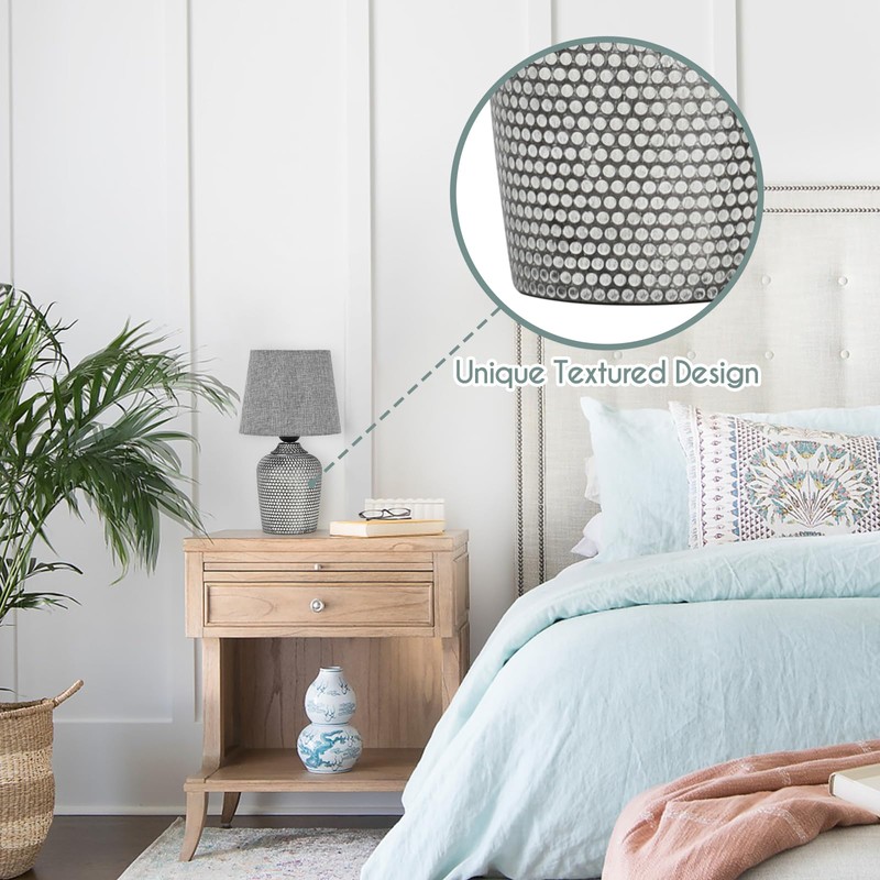 Sucolite Small Table Lamps Set of 2, Bedside Nightstand Lamps for Bedroom Kid’s Room, Cute Desk Lamps with Studded Texture Base for Reading Nursery Living Room Office, Grey
