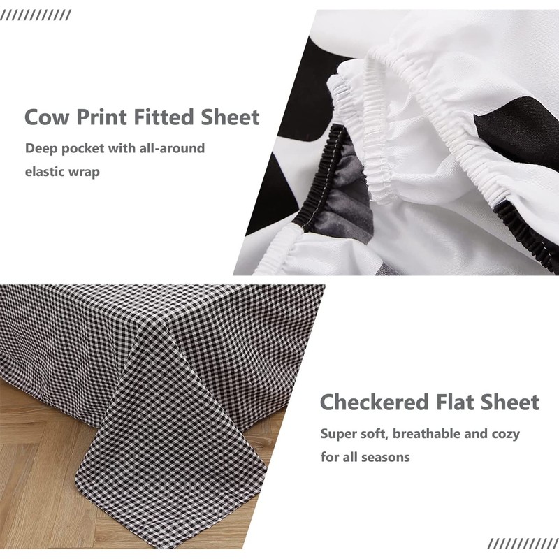 - Fabric: This cow comforter set and sheets uses 100% microfiber outer fabric and ultra soft 240GSM whole piece Microfiber inner fill, which is lightweight, fluffy, cozy and durable, do not need to worry about shifting, clumping, leakage or ripping.