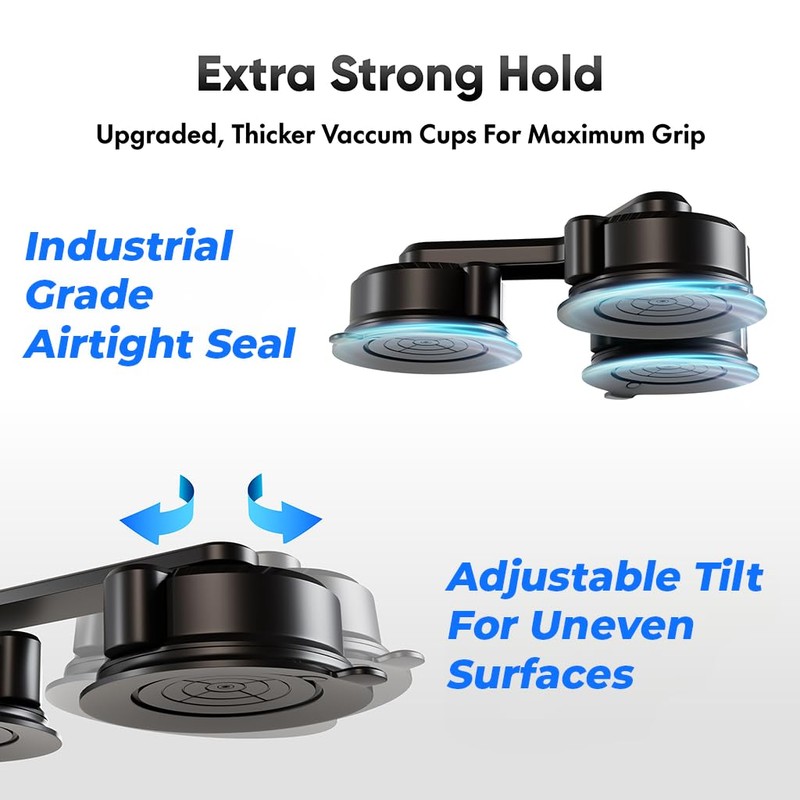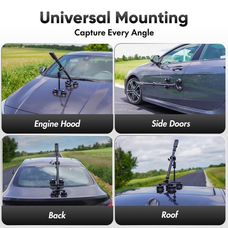 • 【Ultra Strong 5-Cup Suction Mount Kit】 Securely capture cinematic driving footage from your car’s hood, windshield, roof, or side using our ultra-stable camera suction mount. Built with five powerful suction cups, each 8 cm in diameter, it forms a solid base that holds strong even at speeds up to 100 km/h (62 mph). Whether you're filming a scenic drive or a faster paced dynamic scene, this suction cup camera mount ensures your gear stays locked in place, giving you peace of mind on the road.